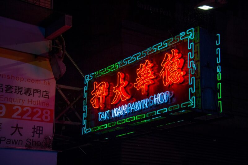 A neon light of a pawn shop in Hong Kong - For more, visit blob.hk